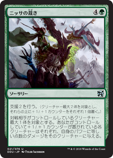 | Rules | Support 2. (Put a +1/+1 counter on each of up to two target creatures.) Choose up to one target creature an opponent controls. Each creature you control with a +1/+1 counter on it deals damage equal to its power to that creature. |