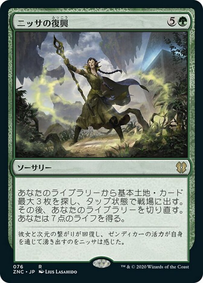 Languages Nissa's Renewal Rinnovamento di Nissa Nissas Erneuerung Renouveau de Nissa Обновление Ниссы Renovación de Nissa Renovação de Nissa 妮莎重光 ニッサの復興