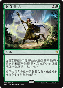 | Flavor | Her connection to the plane restored, Nissa felt the power of Zendikar surge through her. |