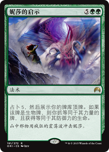 | Rules | Scry 5, then reveal the top card of your library. If it's a creature card, you draw cards equal to its power and you gain life equal to its toughness. |