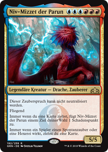 | Rules | This spell can't be countered. Flying Whenever you draw a card, Niv-Mizzet, Parun deals 1 damage to any target. Whenever a player casts an instant or sorcery spell, you draw a card. |