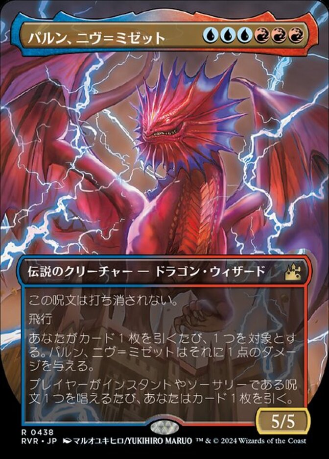 | Rules | This spell can't be countered. Flying Whenever you draw a card, Niv-Mizzet, Parun deals 1 damage to any target. Whenever a player casts an instant or sorcery spell, you draw a card. |