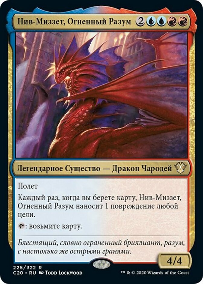 | Rules | Flying Whenever you draw a card, Niv-Mizzet, the Firemind deals 1 damage to any target. : Draw a card. |