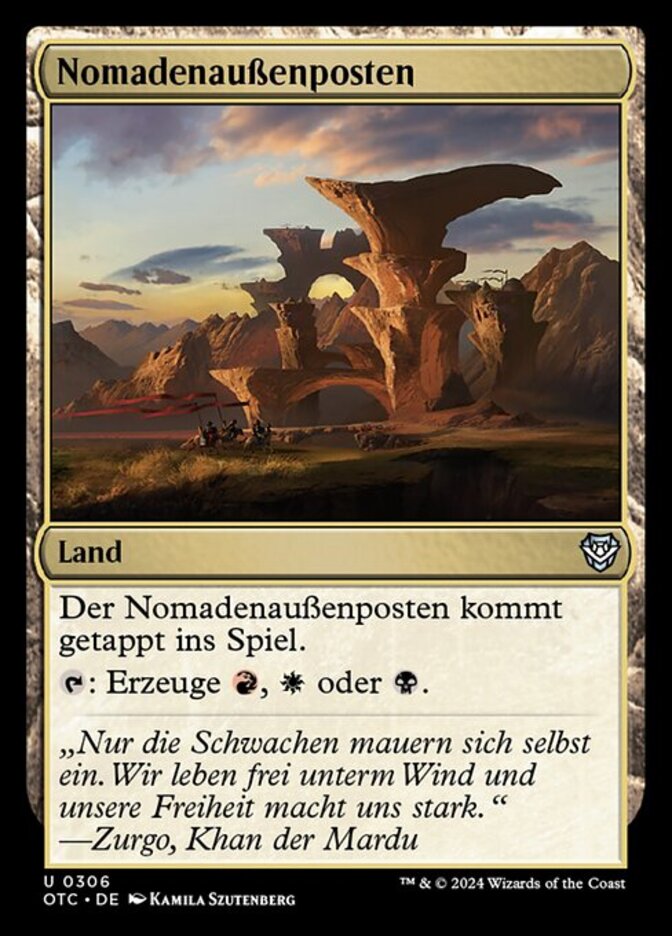 | Rules | Nomad Outpost enters the battlefield tapped. : Add , , or . |