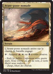 | Rules | Nomad Outpost enters the battlefield tapped. : Add , , or . |