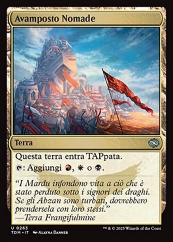 | Rules | Nomad Outpost enters the battlefield tapped. : Add , , or . |