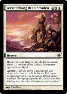 | Rules | Create a 1/1 white Kor Soldier creature token for each creature you control. Rebound (If you cast this spell from your hand, exile it as it resolves. At the beginning of your next upkeep, you may cast this card from exile without paying its mana cost.) |