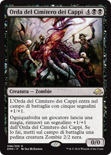 | Rules | Noosegraf Mob enters the battlefield with five +1/+1 counters on it. Whenever a player casts a spell, remove a +1/+1 counter from Noosegraf Mob. If you do, create a 2/2 black Zombie creature token. |
