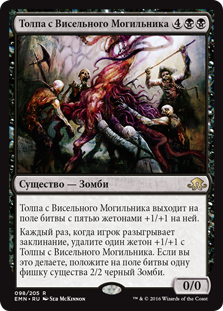 | Rules | Noosegraf Mob enters the battlefield with five +1/+1 counters on it. Whenever a player casts a spell, remove a +1/+1 counter from Noosegraf Mob. If you do, create a 2/2 black Zombie creature token. |