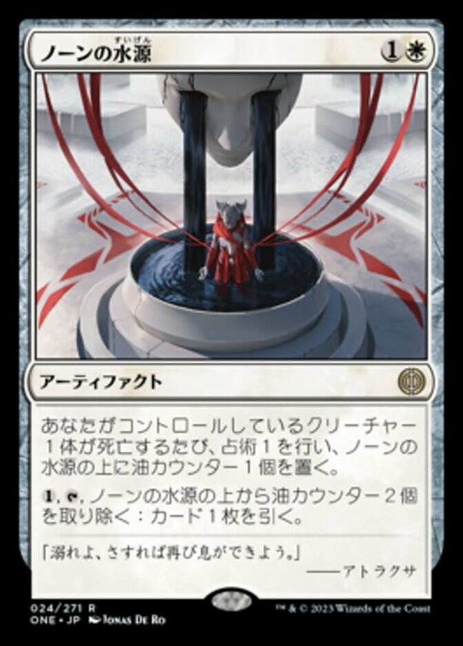 | Rules | Whenever a creature you control dies, scry 1 and put an oil counter on Norn's Wellspring. , , Remove two oil counters from Norn's Wellspring: Draw a card. |
