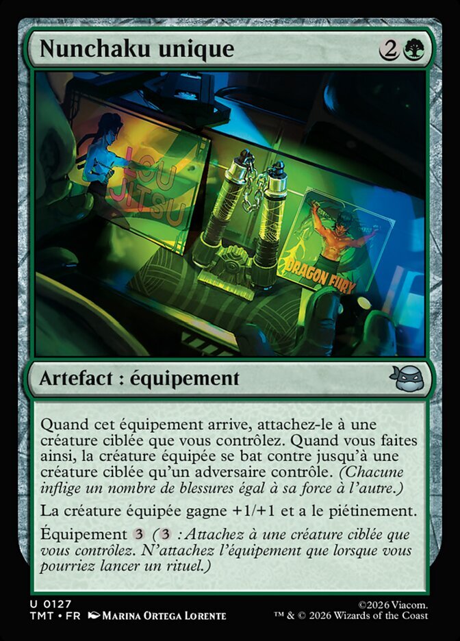 Rules When this Equipment enters, attach it to target creature you control. When you do, equipped creature fights up to one target creature an opponent controls. (Each deals damage equal to its power to the other.)