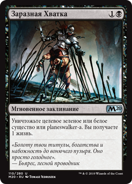 | Rules | Destroy target creature or planeswalker that's green or white. You gain 1 life. |