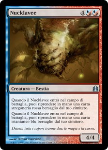 | Rules | When Nucklavee enters the battlefield, you may return target red sorcery card from your graveyard to your hand. When Nucklavee enters the battlefield, you may return target blue instant card from your graveyard to your hand. |