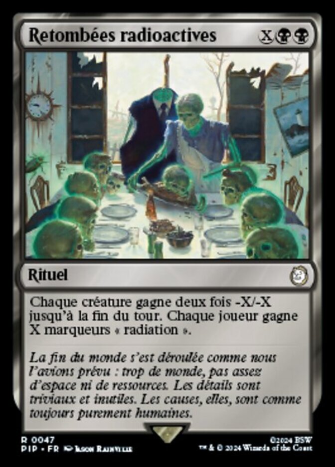 | Rules | Each creature gets twice -X/-X until end of turn. Each player gets X rad counters. |