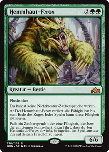 | Rules | Hexproof You can't cast noncreature spells. : Nullhide Ferox loses all abilities until end of turn. Any player may activate this ability. If a spell or ability an opponent controls causes you to discard Nullhide Ferox, put it onto the battlefield instead of putting it into your graveyard. |