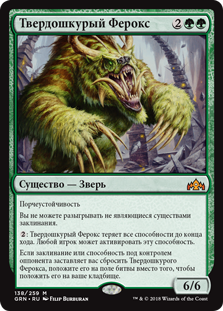 | Rules | Hexproof You can't cast noncreature spells. : Nullhide Ferox loses all abilities until end of turn. Any player may activate this ability. If a spell or ability an opponent controls causes you to discard Nullhide Ferox, put it onto the battlefield instead of putting it into your graveyard. |