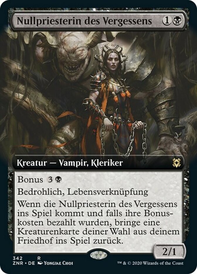 | Rules | Kicker Menace, lifelink When Nullpriest of Oblivion enters the battlefield, if it was kicked, return target creature card from your graveyard to the battlefield. |