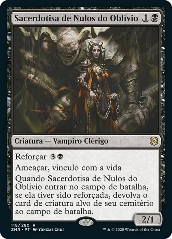 | Rules | Kicker Menace, lifelink When Nullpriest of Oblivion enters the battlefield, if it was kicked, return target creature card from your graveyard to the battlefield. |