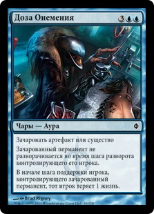 | Rules | Enchant artifact or creature Enchanted permanent doesn't untap during its controller's untap step. At the beginning of the upkeep of enchanted permanent's controller, that player loses 1 life. |