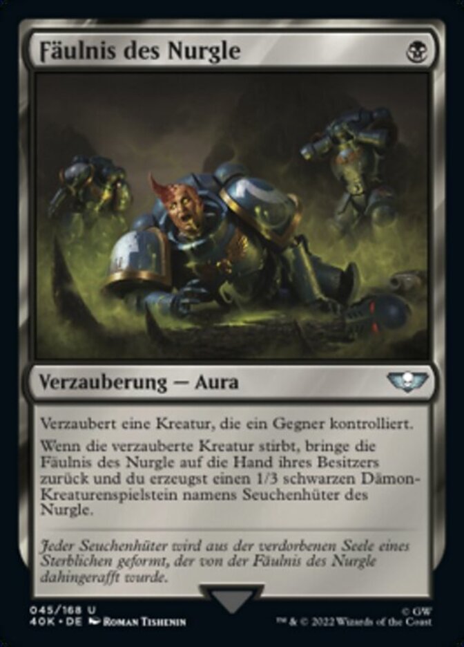 | Rules | Enchant creature an opponent controls When enchanted creature dies, return Nurgle's Rot to its owner's hand and you create a 1/3 black Demon creature token named Plaguebearer of Nurgle. |