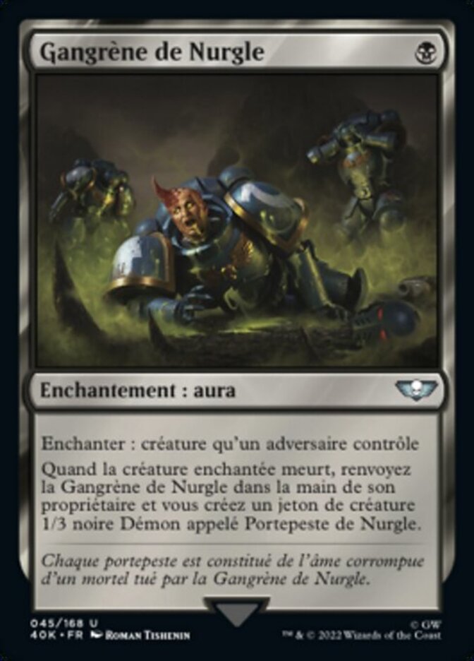 | Rules | Enchant creature an opponent controls When enchanted creature dies, return Nurgle's Rot to its owner's hand and you create a 1/3 black Demon creature token named Plaguebearer of Nurgle. |