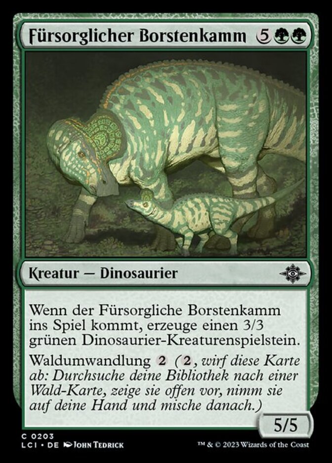 | Rules | When Nurturing Bristleback enters the battlefield, create a 3/3 green Dinosaur creature token. Forestcycling (, Discard this card: Search your library for a Forest card, reveal it, put it into your hand, then shuffle.) |