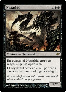 | Rules | As Nyxathid enters the battlefield, choose an opponent. Nyxathid gets -1/-1 for each card in the chosen player's hand. |