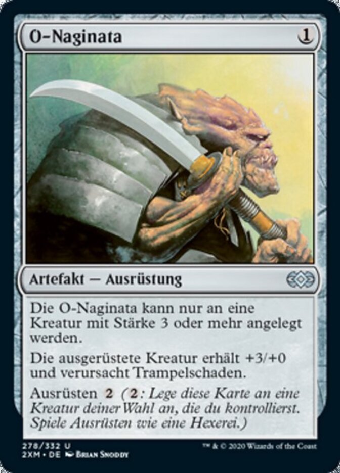 | Rules | O-Naginata can be attached only to a creature with power 3 or greater. Equipped creature gets +3/+0 and has trample. Equip (: Attach to target creature you control. Equip only as a sorcery.) |