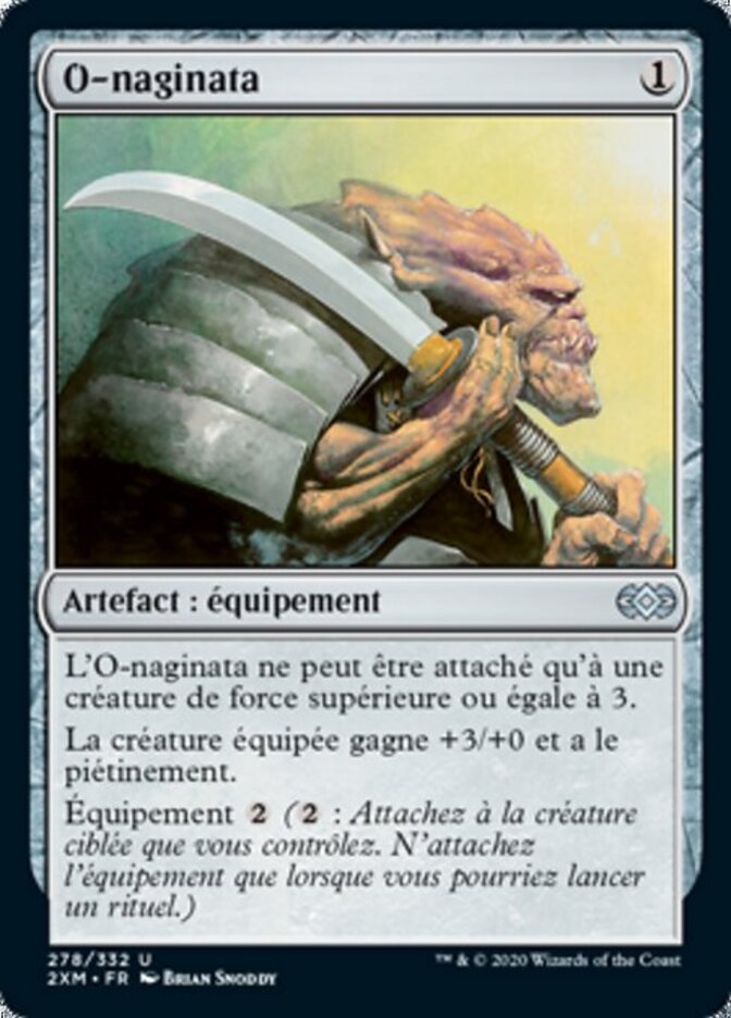 | Rules | O-Naginata can be attached only to a creature with power 3 or greater. Equipped creature gets +3/+0 and has trample. Equip (: Attach to target creature you control. Equip only as a sorcery.) |
