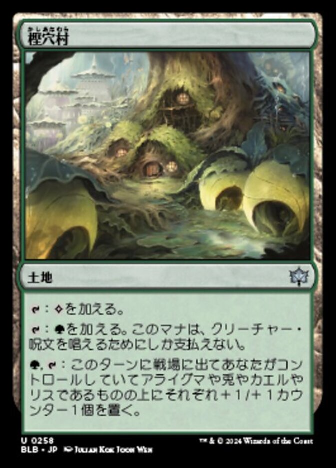 | Rules | : Add . : Add . Spend this mana only to cast a creature spell. , : Put a +1/+1 counter on each Frog, Rabbit, Raccoon, or Squirrel you control that entered the battlefield this turn. |