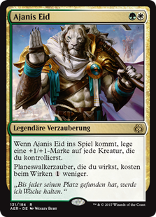 | Rules | When Oath of Ajani enters the battlefield, put a +1/+1 counter on each creature you control. Planeswalker spells you cast cost less to cast. |