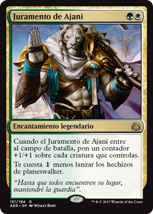 | Rules | When Oath of Ajani enters the battlefield, put a +1/+1 counter on each creature you control. Planeswalker spells you cast cost less to cast. |