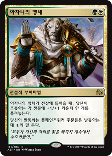 | Rules | When Oath of Ajani enters the battlefield, put a +1/+1 counter on each creature you control. Planeswalker spells you cast cost less to cast. |