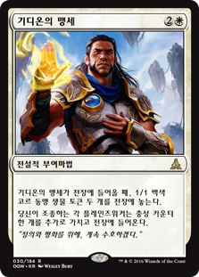 | Rules | When Oath of Gideon enters the battlefield, create two 1/1 white Kor Ally creature tokens. Each planeswalker you control enters the battlefield with an additional loyalty counter on it. |