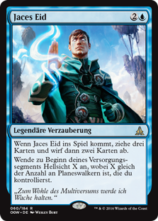 | Rules | When Oath of Jace enters the battlefield, draw three cards, then discard two cards. At the beginning of your upkeep, scry X, where X is the number of planeswalkers you control. |