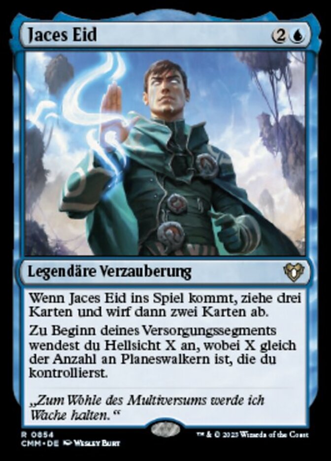 | Rules | When Oath of Jace enters the battlefield, draw three cards, then discard two cards. At the beginning of your upkeep, scry X, where X is the number of planeswalkers you control. |