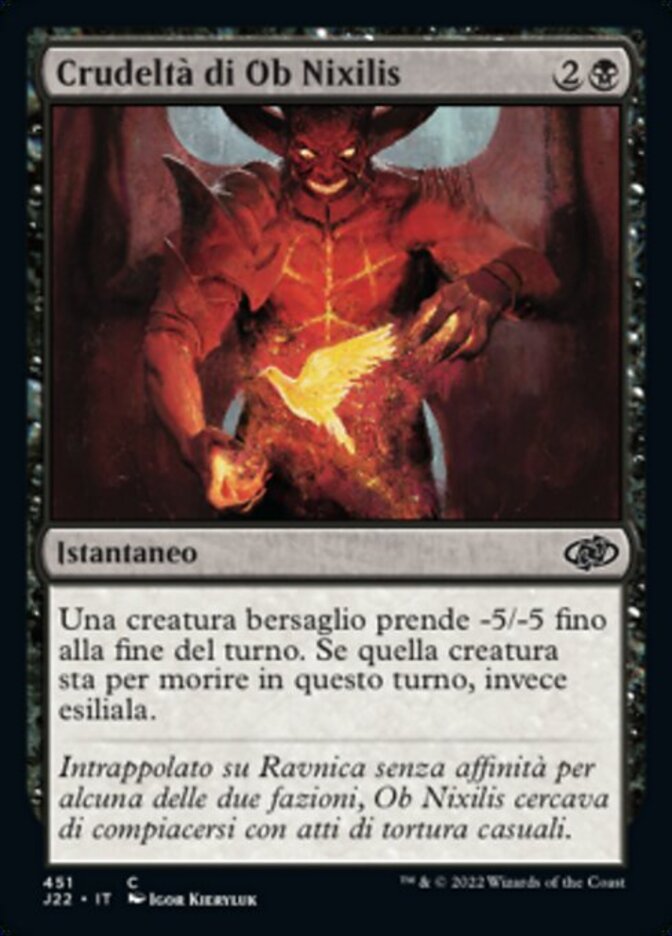 | Flavor | Trapped on Ravnica with no affection for either side, Ob Nixilis sought gratification in random acts of torment. |