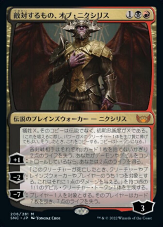 Languages Ob Nixilis, the Adversary Об-Никсилис, Противник Ob Nixilis, der Widersacher 魔头欧尼希兹 Ob Nixilis, o Adversário Ob Nixilis, el Adversario 호적수, 오브 닉실리스 魔頭歐尼希茲 Ob Nixilis, l'Adversaire 敵対するもの、オブ・ニクシリス Ob Nixilis, l'Avversario