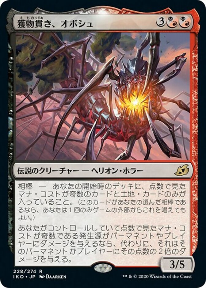 | Rules | Companion — Your starting deck contains only cards with odd mana values and land cards. (If this card is your chosen companion, you may put it into your hand from outside the game for any time you could cast a sorcery.) If a source you control with an odd mana value would deal damage to a permanent or player, it deals double that damage to that permanent or player instead. |