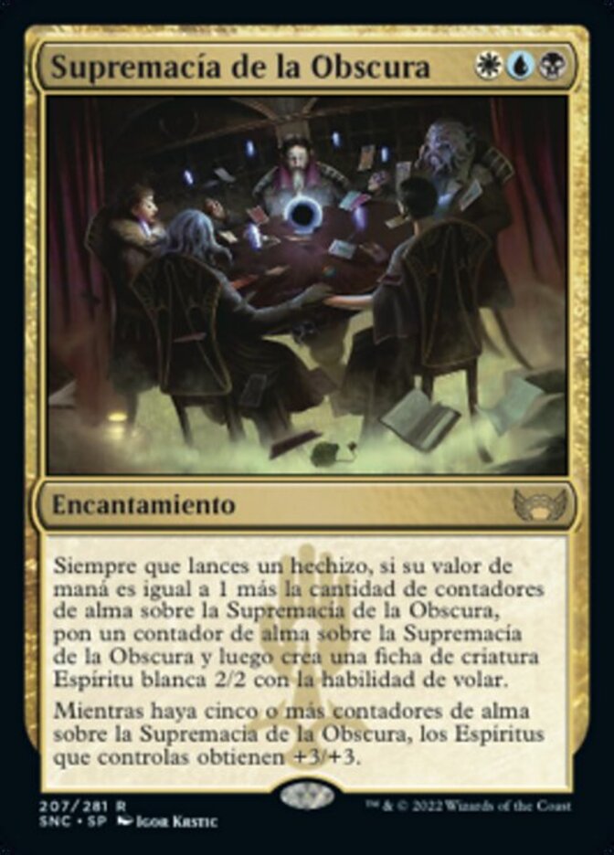 | Rules | Whenever you cast a spell, if its mana value is equal to 1 plus the number of soul counters on Obscura Ascendancy, put a soul counter on Obscura Ascendancy, then create a 2/2 white Spirit creature token with flying. As long as there are five or more soul counters on Obscura Ascendancy, Spirits you control get +3/+3. |