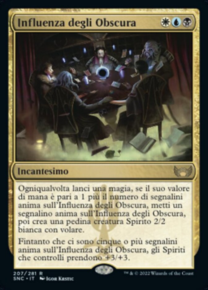 | Rules | Whenever you cast a spell, if its mana value is equal to 1 plus the number of soul counters on Obscura Ascendancy, put a soul counter on Obscura Ascendancy, then create a 2/2 white Spirit creature token with flying. As long as there are five or more soul counters on Obscura Ascendancy, Spirits you control get +3/+3. |