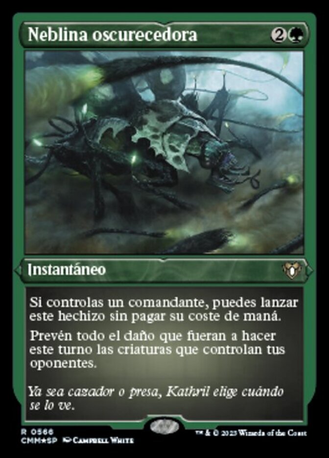 | Rules | If you control a commander, you may cast this spell without paying its mana cost. Prevent all damage that would be dealt this turn by creatures your opponents control. |