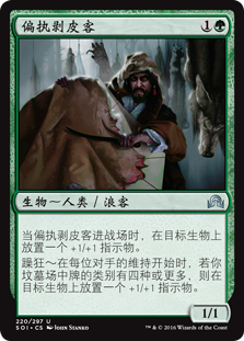| Rules | When Obsessive Skinner enters the battlefield, put a +1/+1 counter on target creature. Delirium — At the beginning of each opponent's upkeep, if there are four or more card types among cards in your graveyard, put a +1/+1 counter on target creature. |