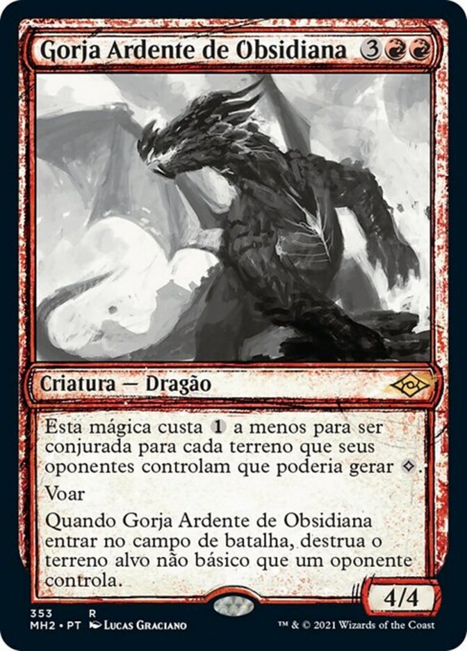 | Rules | This spell costs less to cast for each land your opponents control that could produce . Flying When Obsidian Charmaw enters the battlefield, destroy target nonbasic land an opponent controls. |