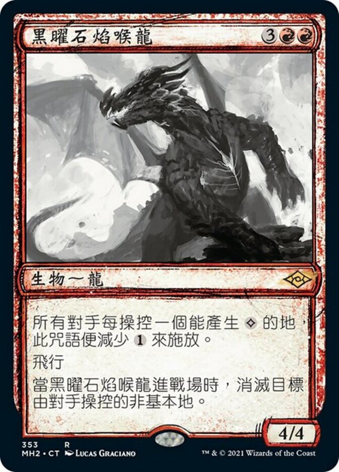 | Rules | This spell costs less to cast for each land your opponents control that could produce . Flying When Obsidian Charmaw enters the battlefield, destroy target nonbasic land an opponent controls. |