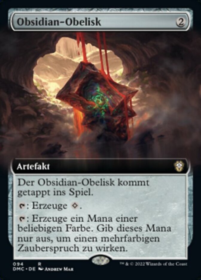 | Rules | Obsidian Obelisk enters the battlefield tapped. : Add . : Add one mana of any color. Spend this mana only to cast a multicolored spell. |