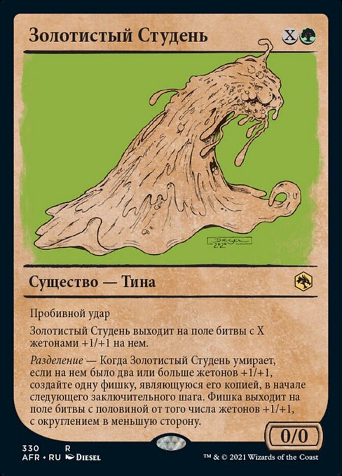 | Rules | Trample Ochre Jelly enters the battlefield with X +1/+1 counters on it. Split — When Ochre Jelly dies, if it had two or more +1/+1 counters on it, create a token that's a copy of it at the beginning of the next end step. The token enters the battlefield with half that many +1/+1 counters on it, rounded down. |