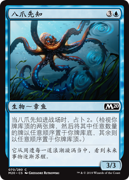 | Rules | When Octoprophet enters the battlefield, scry 2. (Look at the top two cards of your library, then put any number of them on the bottom of your library and the rest on top in any order.) |