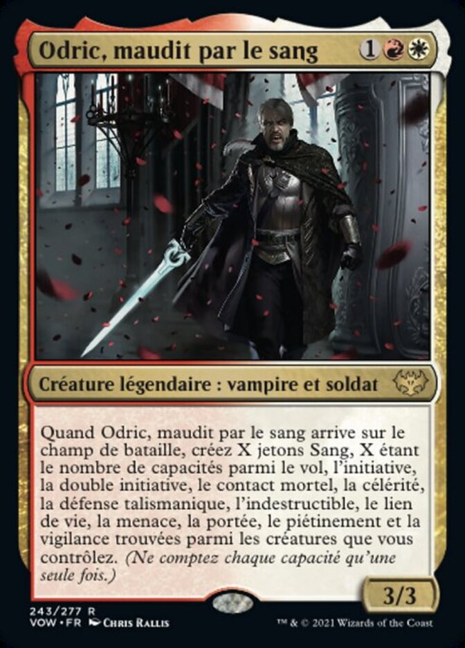 | Rules | When Odric, Blood-Cursed enters the battlefield, create X Blood tokens, where X is the number of abilities from among flying, first strike, double strike, deathtouch, haste, hexproof, indestructible, lifelink, menace, reach, trample, and vigilance found among creatures you control. (Count each ability only once.) |