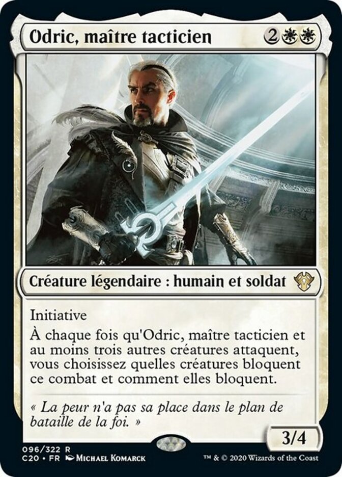 | Rules | First strike (This creature deals combat damage before creatures without first strike.) Whenever Odric, Master Tactician and at least three other creatures attack, you choose which creatures block this combat and how those creatures block. |